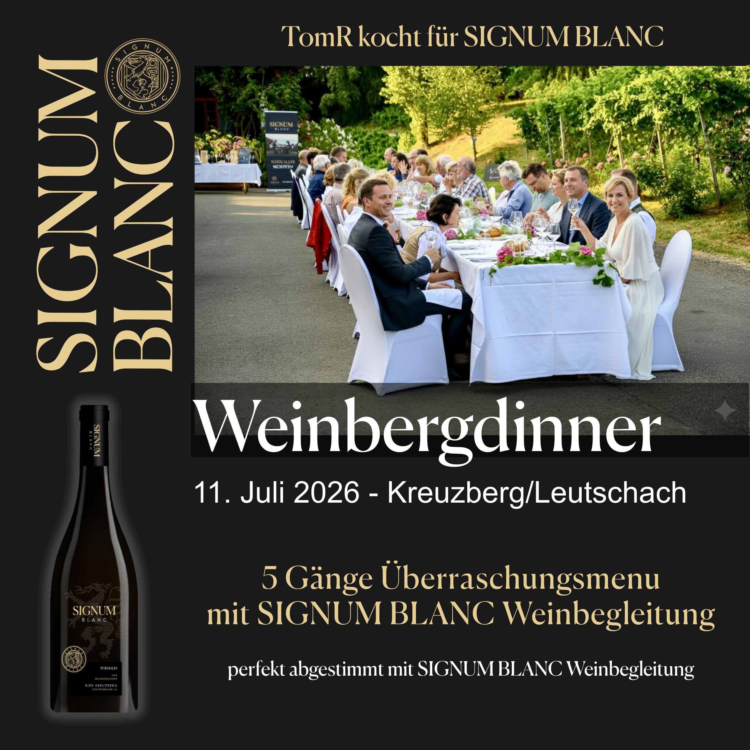 Haubenkoch und Istrien-Auswanderer Tom Riederer kehrt für einen Sommerabend zurück in seine Heimat Leutschach. Für SIGNUM BLANC kocht er ein hochkarätiges Tapas-Menü. Erleben Sie mit uns einen geschmackvollen und exklusiven Abend mitten in den steirischen Weinbergen. Wir freuen uns auf Sie!